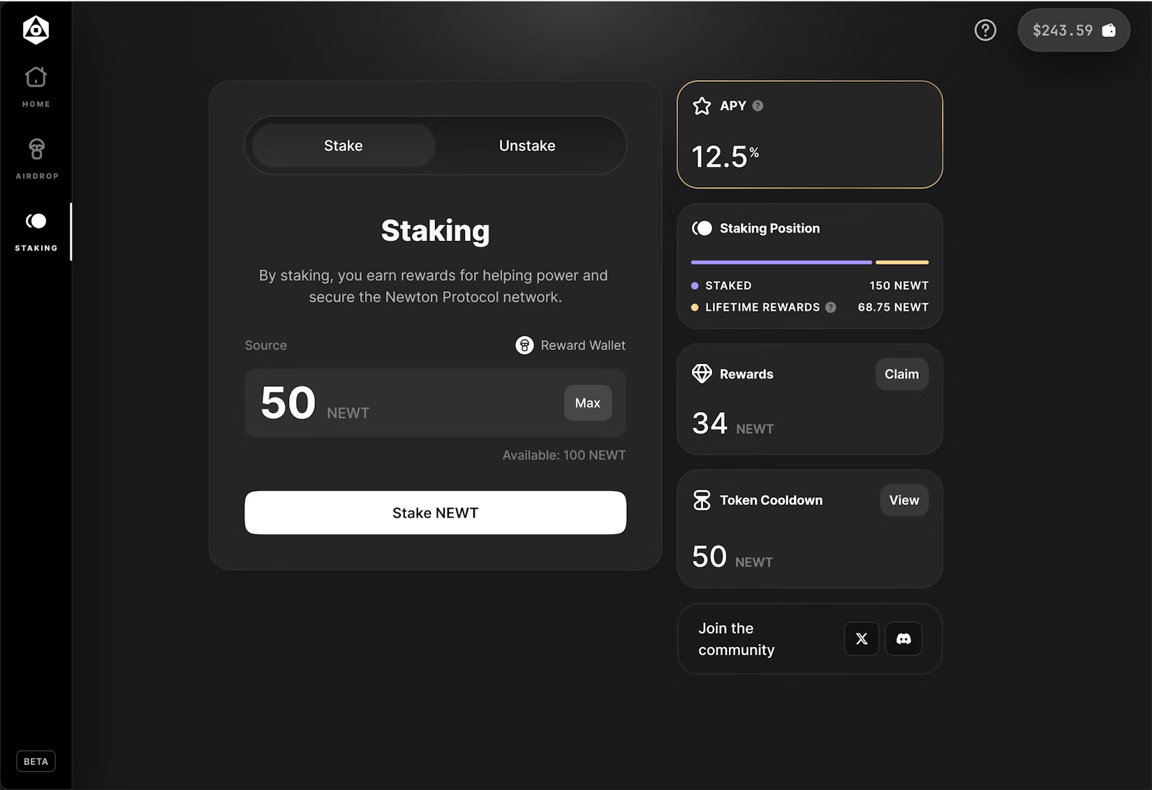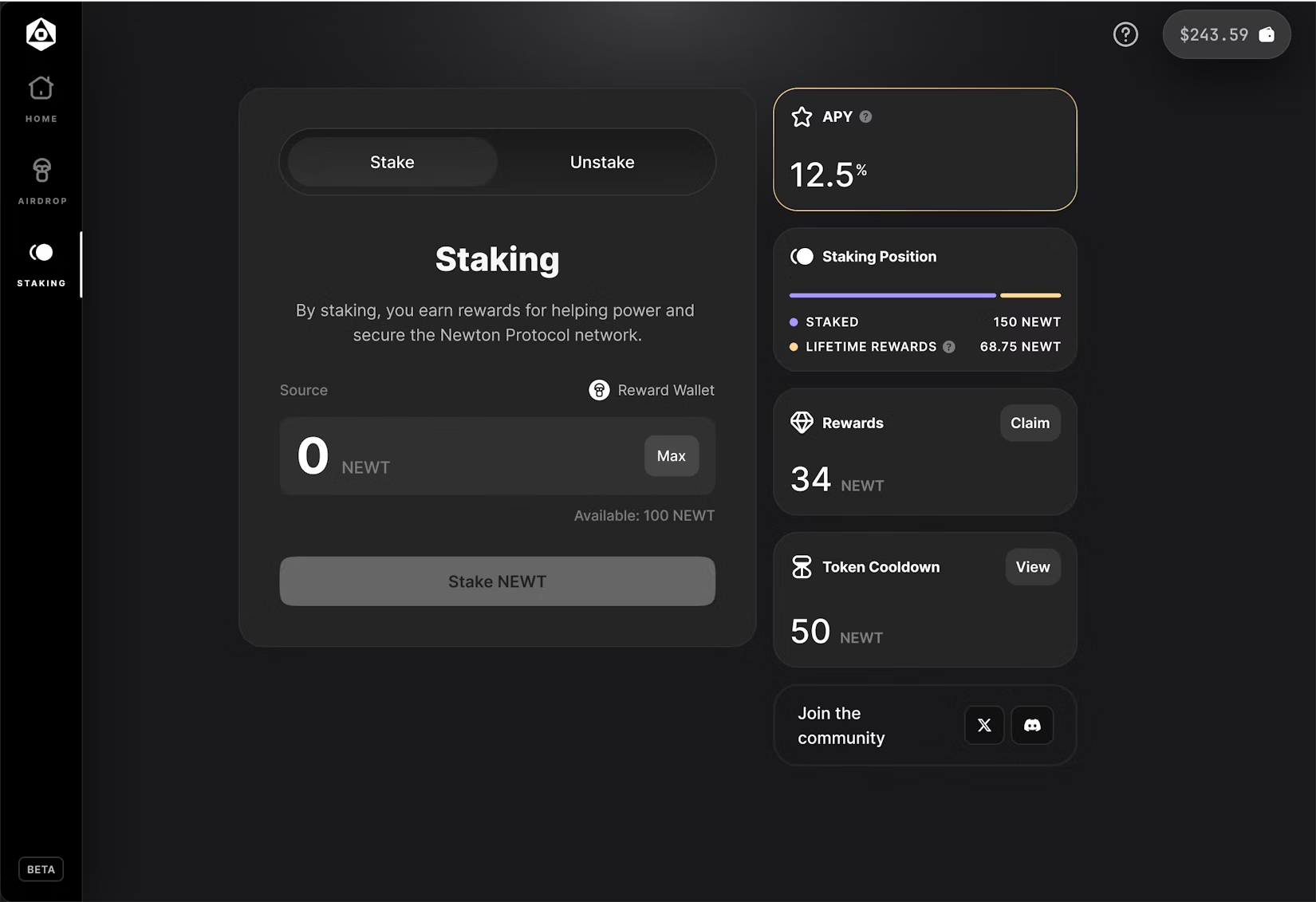 Method 1: Staking NEWT on Newton.xyz