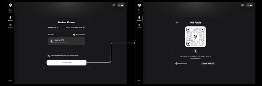 - Fund your Newton.xyz account with ETH on Ethereum mainnet to cover the necessary Network Fees to claim your airdrop