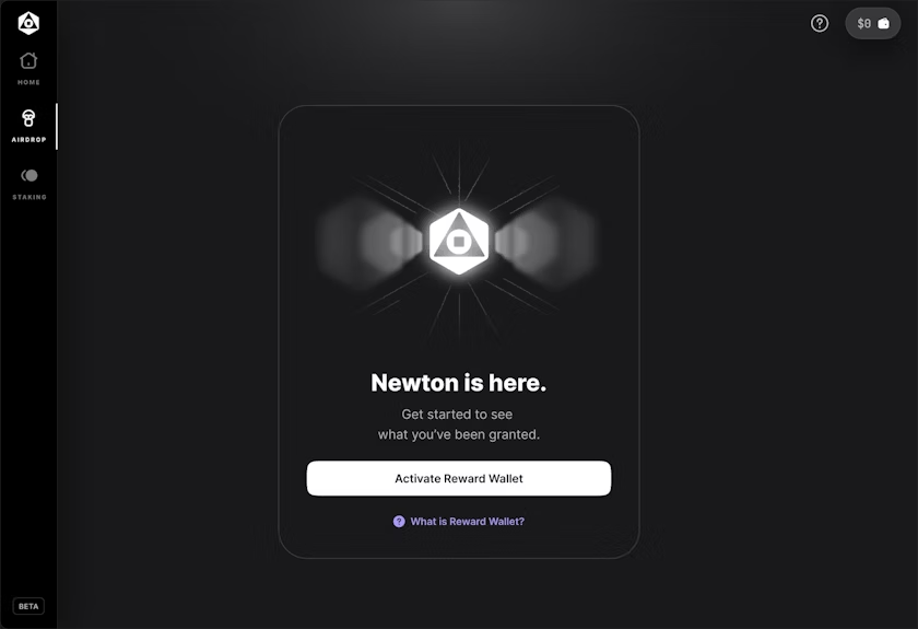 - A Newton Reward Wallet that is a non-custodial externally owned account (EOA) used to claim airdrop and staking rewards